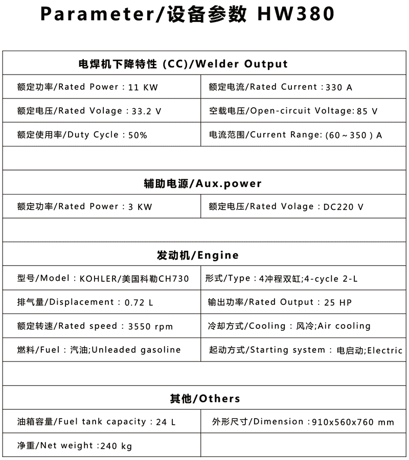 HW380 汽油350A发电电焊两用机 | 350A Gasoline generator welder