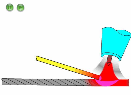 拖把:焊嘴轻轻靠或不靠在焊缝上面,右手小指或无名指也是靠或不靠在工件上,手臂摆动小,拖着焊把进行焊接。